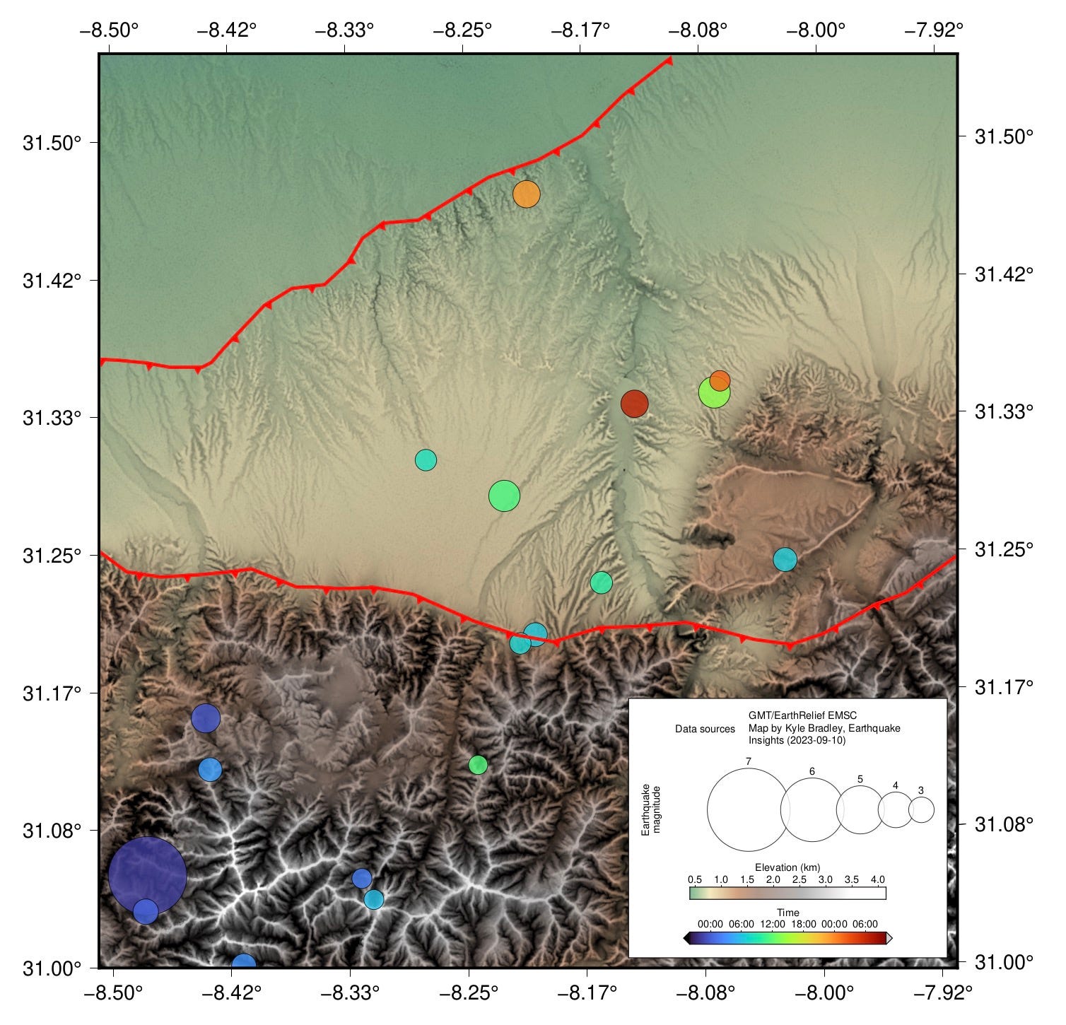 Bradley, K., Hubbard, J., 2023. Deadly M6.8 earthquake hits Morocco. Earthquake Insights, https://doi.org/10.62481/23bce686